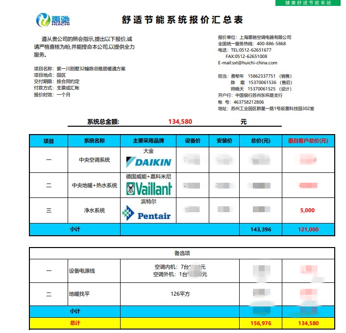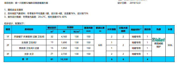 威能地暖配置表