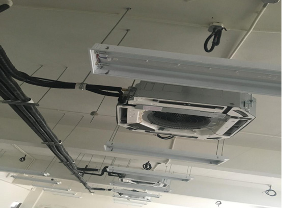 本項目空調(diào)選用大金VRV D系列中央空調(diào)室外機和大金智能感知環(huán)繞氣流嵌入式+中靜壓風管機;本項目新風選用大金VRV全新風處理機系統(tǒng)。大金VRV D系列最高IPLV值高達8.2,遠超國家一級節(jié)能標準;系統(tǒng)總管長可達1000m,室內(nèi)外機高低差室外機在室內(nèi)機上方最大可達50m,室外機在室內(nèi)機下方最大可達90m,最大實際單管長165m。輕松對應超高層大樓。