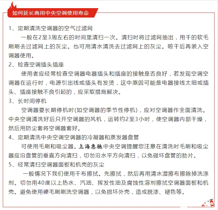 我們都經(jīng)常見到中央空調(diào),商場、超市等等大型場所,不同于家用小型中央空調(diào),商用中央空調(diào)需要馬力十足。大家都知道商用中央空調(diào)實用的時間比較長。那么,如果在這么長的時間內(nèi)保證商用中央空調(diào)的制冷、制暖效果應該如何做呢?接下來惠馳小編就來給大家簡單介紹一下商用中央空調(diào)有哪些分類以及如何延長商用中央空調(diào)使用壽命。