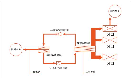 室外機通過冷媒管與多臺室內(nèi)機連接,每個房間的內(nèi)機均直接與空氣換熱。