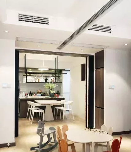 由于小寶比較敏感,為了解決無法開窗通風的問題,設計師選用了大金全熱交換新風系統,可以去除PM2.5、汽車尾氣中的SO2,NO2等有害氣體,既可以把外界的臟空氣隔絕,也可以把屋內的廢氣“吸走”,守護家人的健康。